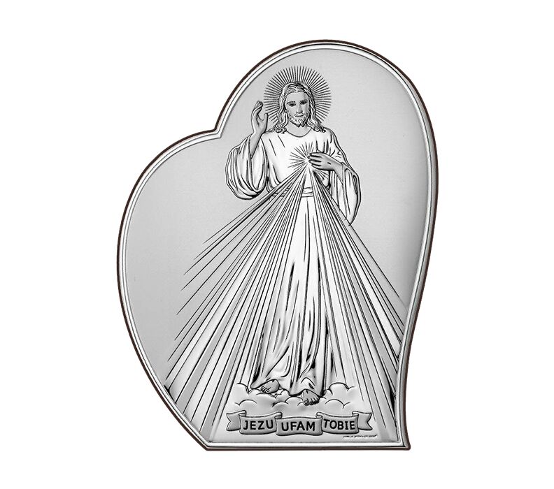 • Elegancki obrazek srebrny z wizerunkiem Jezusa Miłosiernego i napisem „Jezu, ufam Tobie” – symbol zaufania i wiary. Wykonany z wysokiej jakości srebra laminowanego, zachwyca subtelnym połyskiem i trwałością. Idealny jako prezent na Pierwszą Komunię Świętą, bierzmowanie, a także inne ważne okazje religijne. Uniwersalna, estetyczna forma sprawia, że pięknie prezentuje się w każdym wnętrzu.