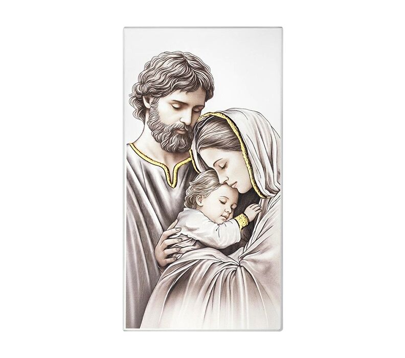 • Subtelny i elegancki obrazek przedstawiający Świętą Rodzinę w ciepłej, pełnej miłości scenie. Złote akcenty na szatach i obrzeżach nadają całości wyjątkowego blasku i podkreślają sakralny charakter wizerunku. Wykonany na bielonym, lakierowanym drewnie z precyzyjnym nadrukiem, zachwyca jakością i dbałością o detal. To idealna pamiątka na ślub, chrzest, komunię lub prezent dla bliskiej osoby, symbolizujący miłość, wiarę i rodzinne wartości.